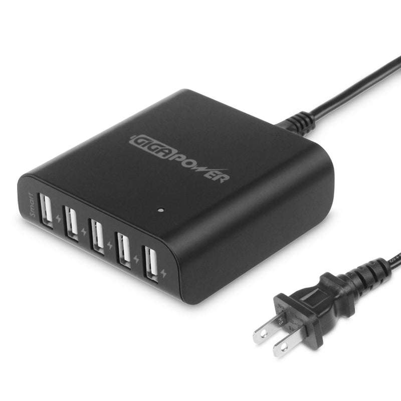 GIGAPOWER 5 Port USB Charger - 40W High Speed Charging Station (Black)