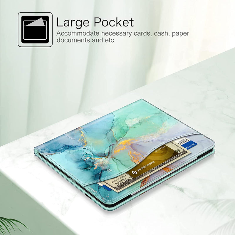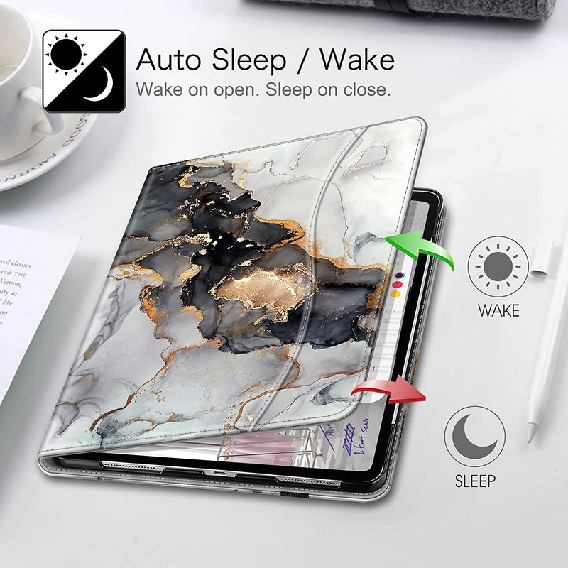 Seamlessly works with Apple Pencil 2nd gen magnetic and wireless charging when the case is on. This case allows you to adjust the iPad to multiple angles securely. Document card pocket is designed for you to store your business cards, bank cards, notes or bills.