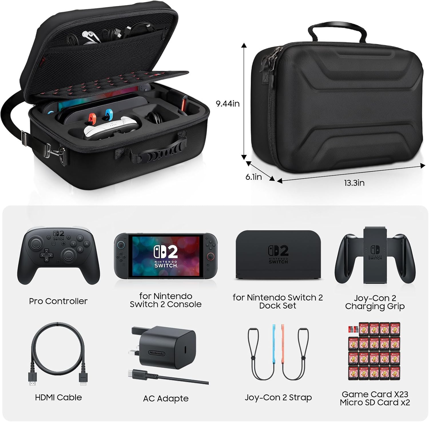 - All-in-One Storage Case: Specifically designed for the Nintendo Switch 2 (2025), this case comfortably holds the console, dock set, AC adapter, Joy-Con 2 charging grip, Joy-Con 2 straps, HDMI cable, Pro Controller, and other accessories in one convenient, compact package.