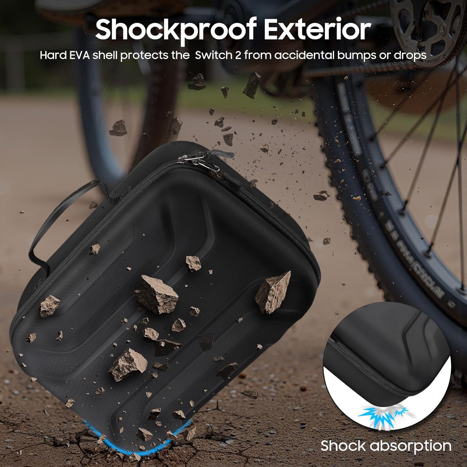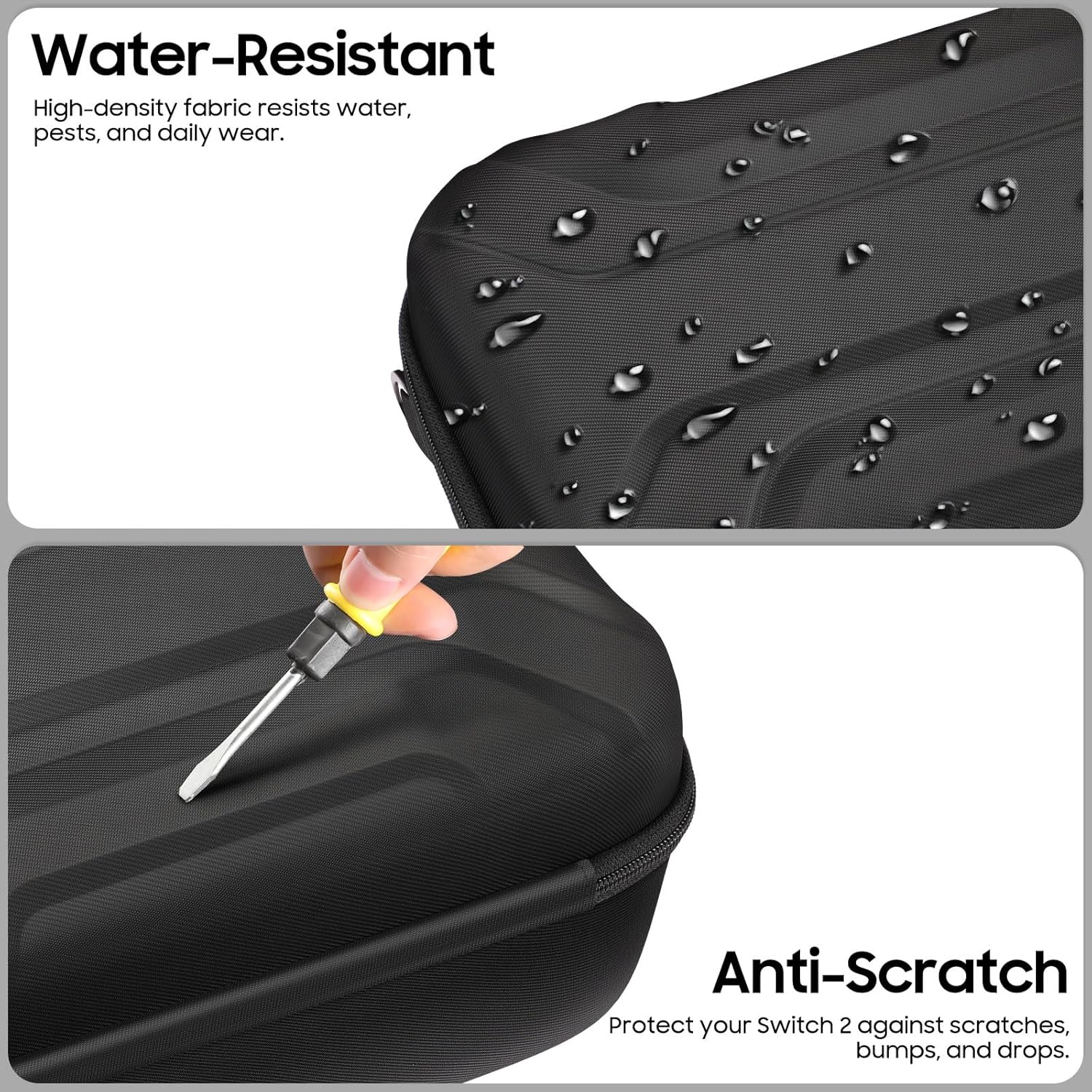 - Features a hard EVA exterior that effectively shields your Nintendo Switch 2 (2025) from bumps, drops, and scratches, combined with a soft interior liner that guards against daily wear and tear. The custom-cut high-density foam insert offers superior impact and scratch resistance while keeping your console and accessories securely organized.