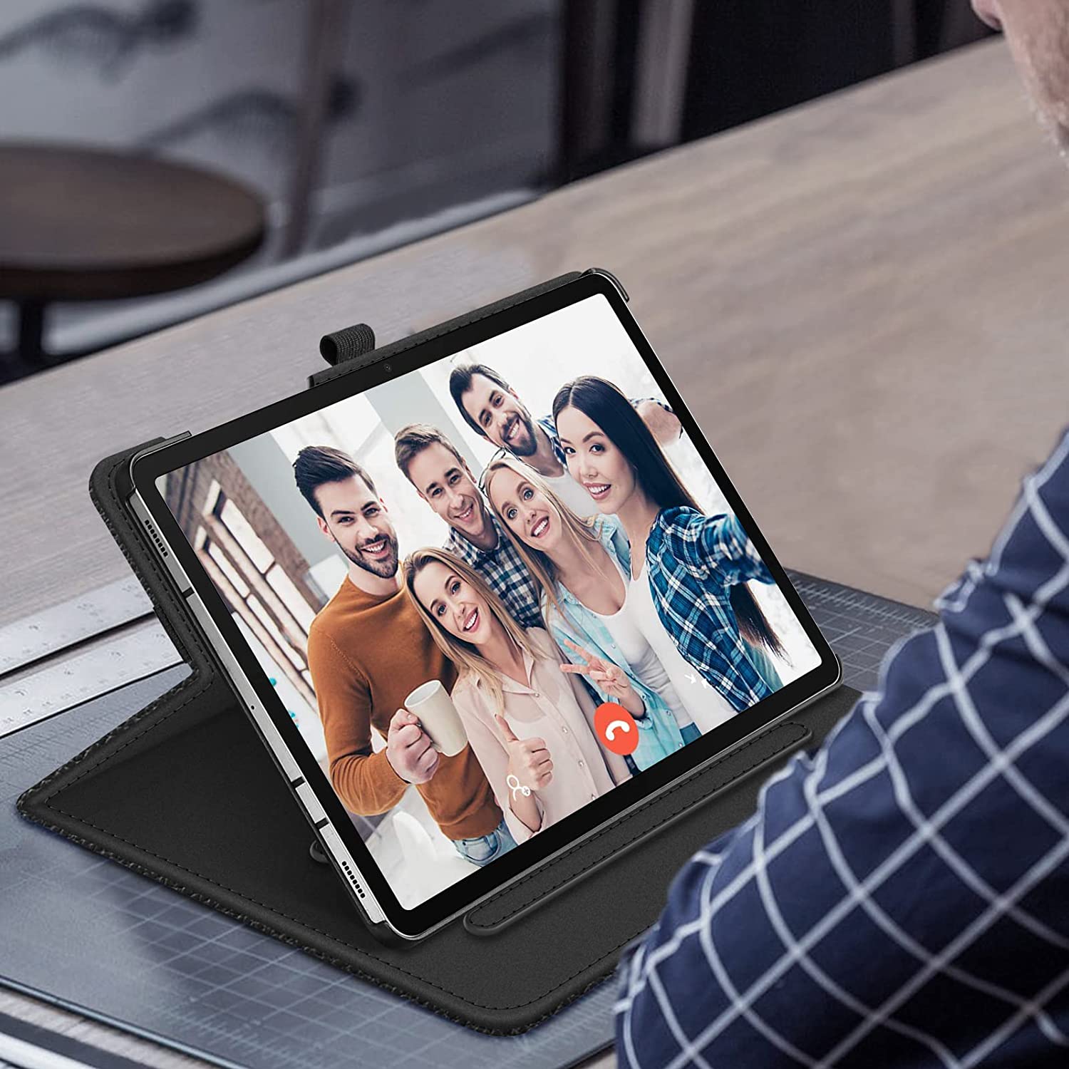 [Adjustable Angles] This case allows you to adjust the tablet to multiple angles securely. Document Card Pocket is designed for storing your business cards, bank cards, notes or bills while on the go.