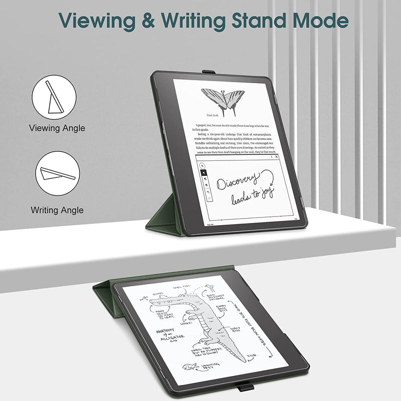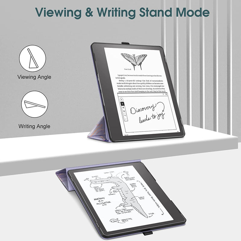 [Premium Material] Durable PU leather cover and soft scratch-free microfiber interior provide comfort and protection for your Kindle Scribe eReader. Premium hard back shell locks your tablet in place and absorbs drops and bumps.