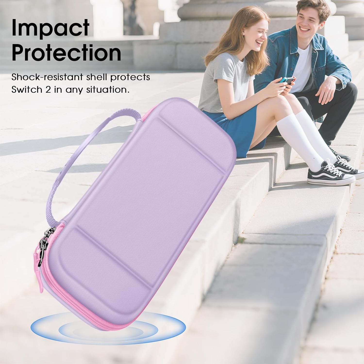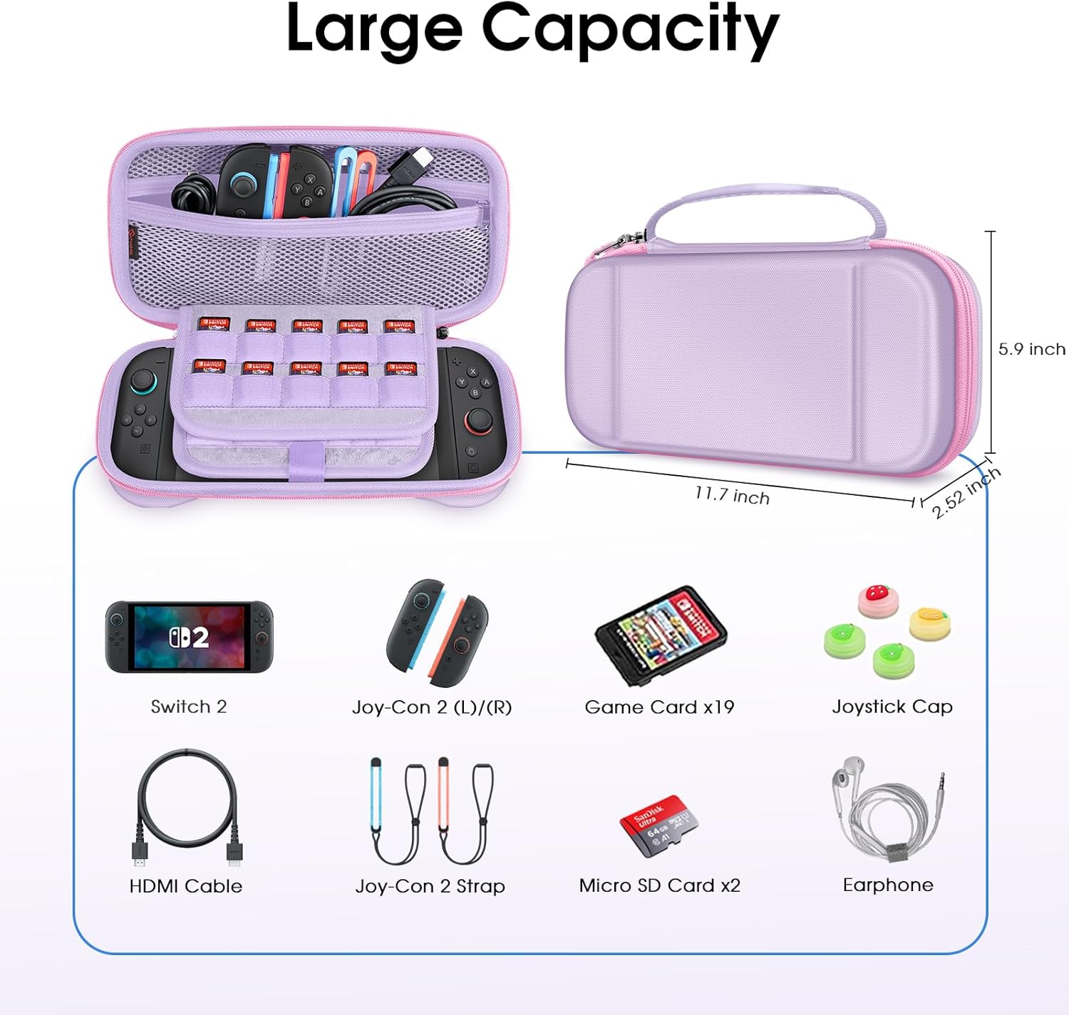 Great Portability: Designed to be slim on the outside but roomy inside, this carrying case holds your Nintendo Switch 2 and accessories securely, while the sturdy handle ensures easy transport.