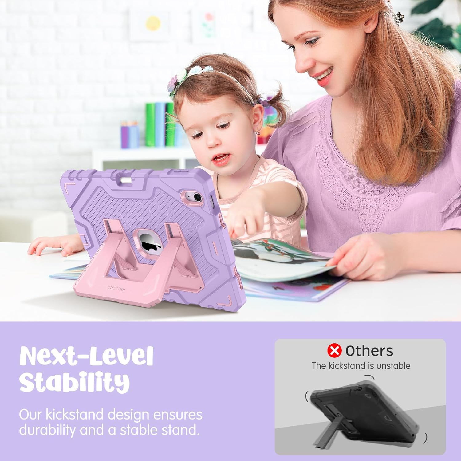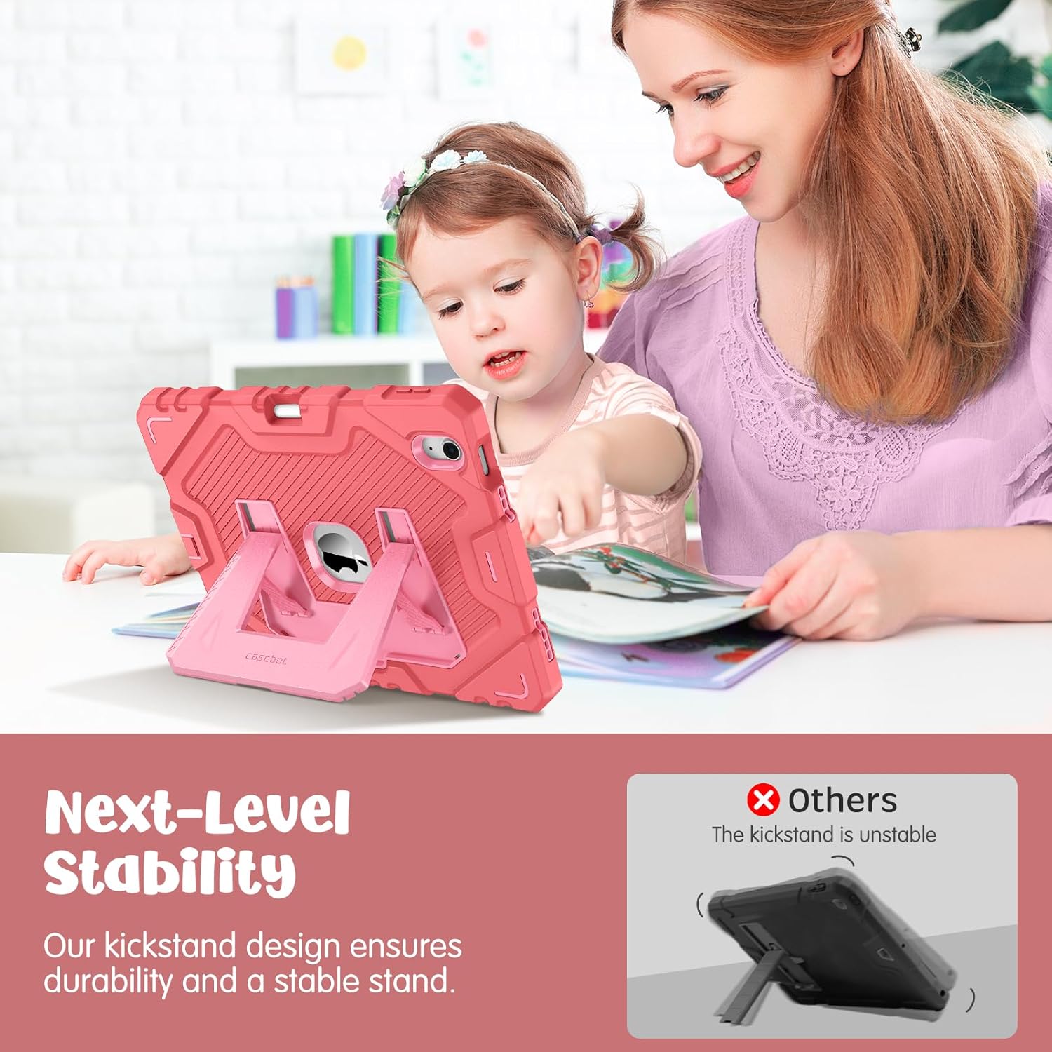 Comfortable Viewing Angles: The support bracket features an adjustable angle function, allowing children to choose optimal vertical and horizontal positions (2 modes) according to their preferences. Whether watching videos, playing games, or engaging in educational activities, they can enjoy the best visual experience.