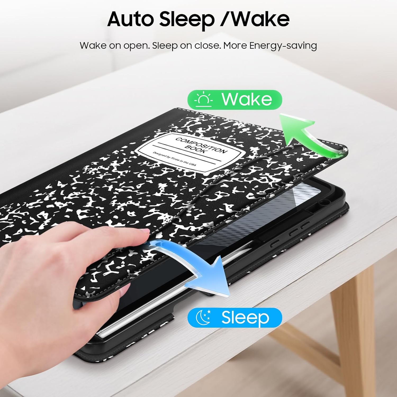 • Adjustable Angles: This case allows you to adjust the tablet to multiple angles securely. Document Card Pocket is designed for you to store your business cards, bank cards, notes or bills while on the go.
