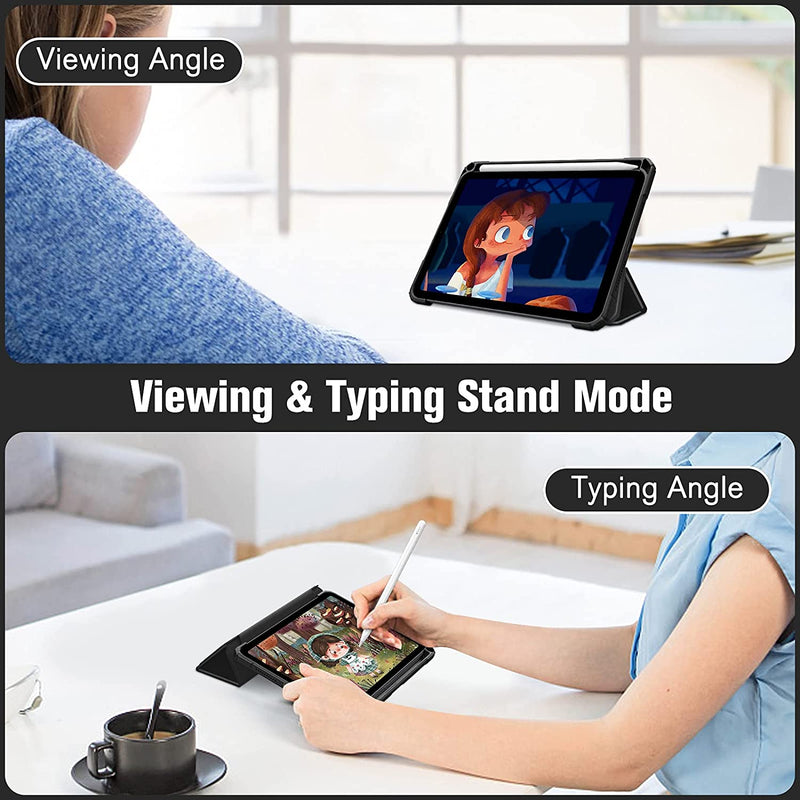 This Fintie iPad mini 8.3-inch case, with a simple and classy design, features a durable polycarbonate PC back to prevent unnecessary damage. The cover is uniquely designed to flip back and transform the case into a comfortable viewing stand for two different viewing angles.