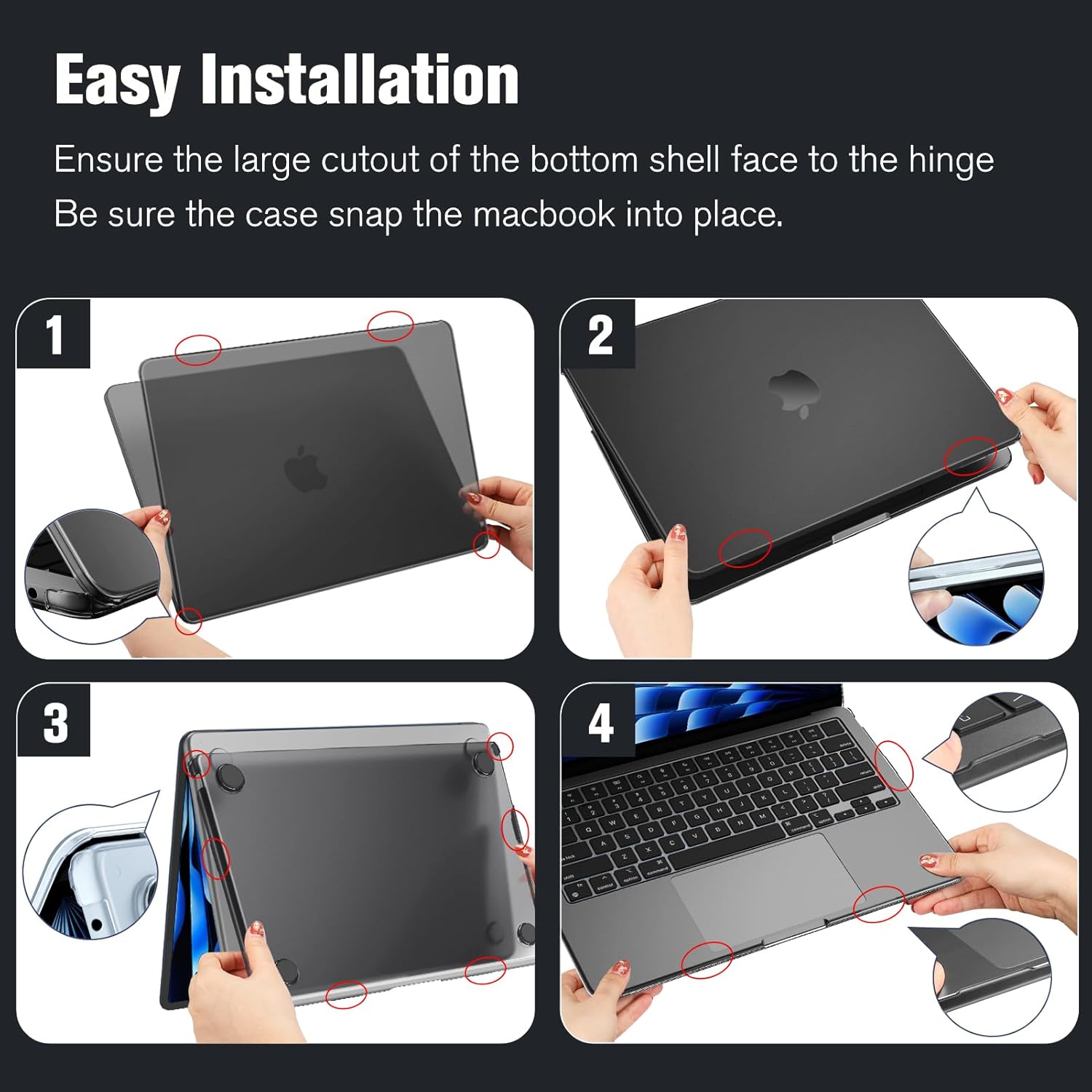 [Precise cut-outs, seamless fit] The case is designed for the 13.6-inch MacBook Air M2/M3/M4 chip, it is shaped by micro 3D cutting technology according to the original MacBook. It fits snugly like a second skin, allows easy access to all ports and ensures smooth opening and closing. Ultra micro clip design allows easy installation and removal.